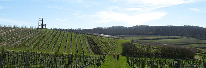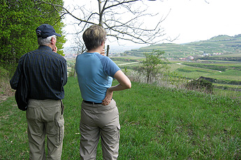 Das sind zunächst die Terrassen, auf denen hier die Weinreben wachsen. Weinterrassen hat man schon im Mittelalter angelegt und nicht nur am Kaiserstuhl. Doch fast überall sind sie heute verschwunden zugunsten einer besseren Bearbeitbarkeit des Bodens durch Maschinen. Im Kaiserstuhl ist die "Maschinenfreundlichkeit" im 20. Jahrhundert natürlich auch ein Thema geworden, doch auf die Terrassen kann man hier nicht verzichten, ohne zugleich den fruchtbaren Lössboden der Erosion auszusetzen. Also hat man hier in den 70er Jahren aus kleinen Terrassen große, zum Teil sogar sehr große gemacht. Die Erosion konnte man damit im Wesentlichen verhindern, auch wenn einige der Großböschungen nach starken Regenfällen beachtlich ins Rutschen gerieten. Doch einige andere Folgen dieser Umgestaltung – auf das Kleinklima der Terrassen-Anbauflächen und auf die Vegetation der großen Terrassenböschungen und den Lebensraum zahlreicher, für den Kaiserstuhl typischer Kleinlebewesen - hatte man nicht vorhergesehen. Heute versucht man, einen Mittelweg zu gehen: Großterrassen werden nicht mehr neu angelegt und auf den alten hat man die schlimmsten Folgen durch Korrekturen beseitigt. Doch die traditionellen Kleinterrassen, auf denen zum Teil nur 2 bis 3 Reihen von Reben Platz hatten, sind heute nicht mehr wirtschaftlich anzubauen und das kann dazu führen, dass künftig diese nur von Hand zu bearbeitenden Flächen brach liegen bleiben. Damit würde der Kaiserstuhl, der mit seinen - kleinen oder größeren Terrassen und seinen vielen Reben – eine alte Kulturlandschaft darstellt, sein vertrautes Gesicht und einen Teil seiner Vielfalt verlieren und mit ihm eine Reihe von Kaiserstühler Winzern ihre Existenzgrundlage – vielleicht auch einige, die hier vom Tourismus leben, denn die Gäste, die den Kaiserstuhl lieben, kommen nicht nur des Sonnenscheins wegen hierher, sondern auch des Weins und der Vielfalt in Natur und Landschaft wegen.